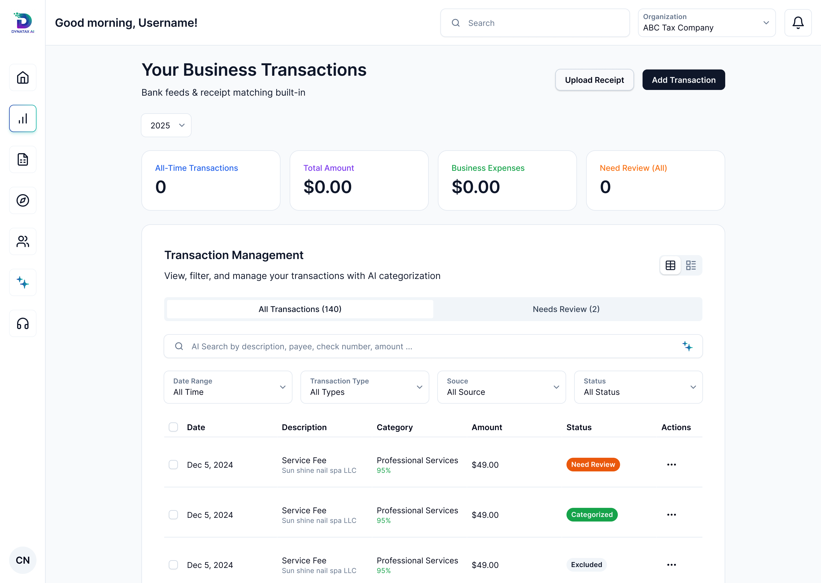 Review AI suggestions, approve categorizations, and generate tax-ready financial reports.